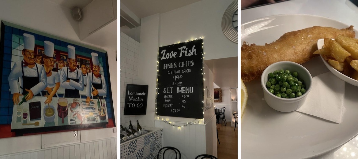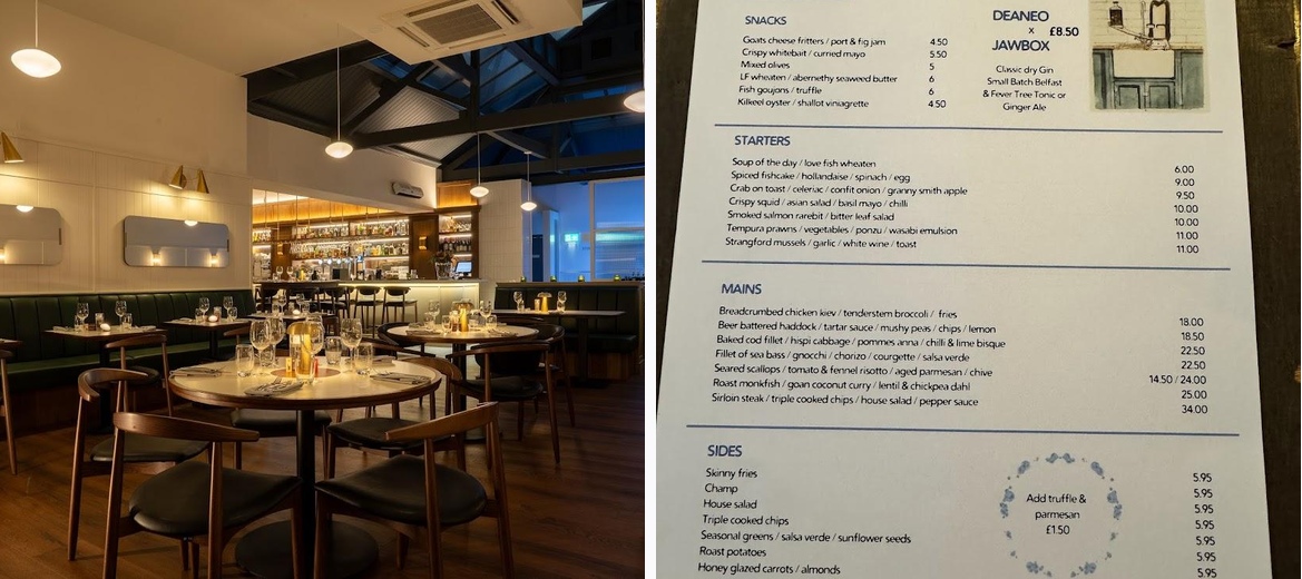 Deanes Love Fish offers lunch options with a relaxed atmosphere, perfect for a light snack or a full three-course meal.